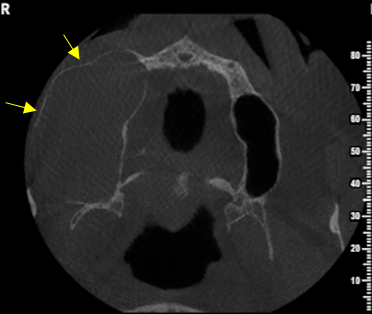 Παρατηρείται επίσης λέπτυνση και ήπια έκπτυξη του πλαγίου τοιχώματος του ιγμορείου άντρου.