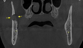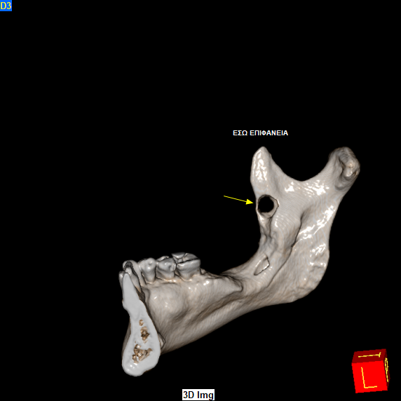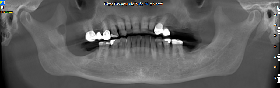 Ο ασθενής παραπέμφθηκε από τον οδοντίατρό του για περαιτέρω αξιολόγηση των ευρημάτων με Υπολογιστική Τομογραφία Κωνικής Δέσμης (CBCT).